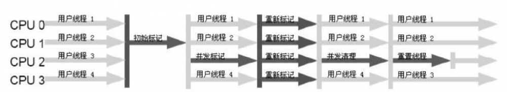 - 并发环境的区别:“并发标记”是与用户线程一起工作的,并发瓶颈较窄(工作线程少+安全检查);“重新标记”需要stop the world,之后仅有“重新标记”的线程在工作,并发瓶颈宽的多