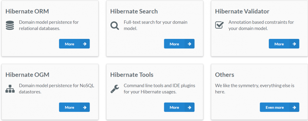 Hibernate.Everything data Hibernate ORM:关系数据库域模型持久化 Hibernate Search:全文检索域模型 Hibernate Validator:基于域模型注解约束 Hibernate OGM:Nosql数据库域模型持久化 Hibe...