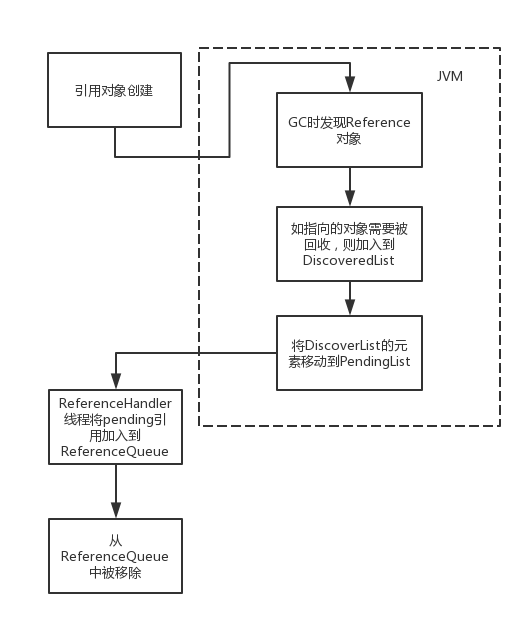 流程比较简单:就是源源不断的从PendingList中提取出元素,然后将其加入到ReferenceQueue中去,开发者可以通过从ReferenceQueue中poll元素感知到对象被回收的事件。