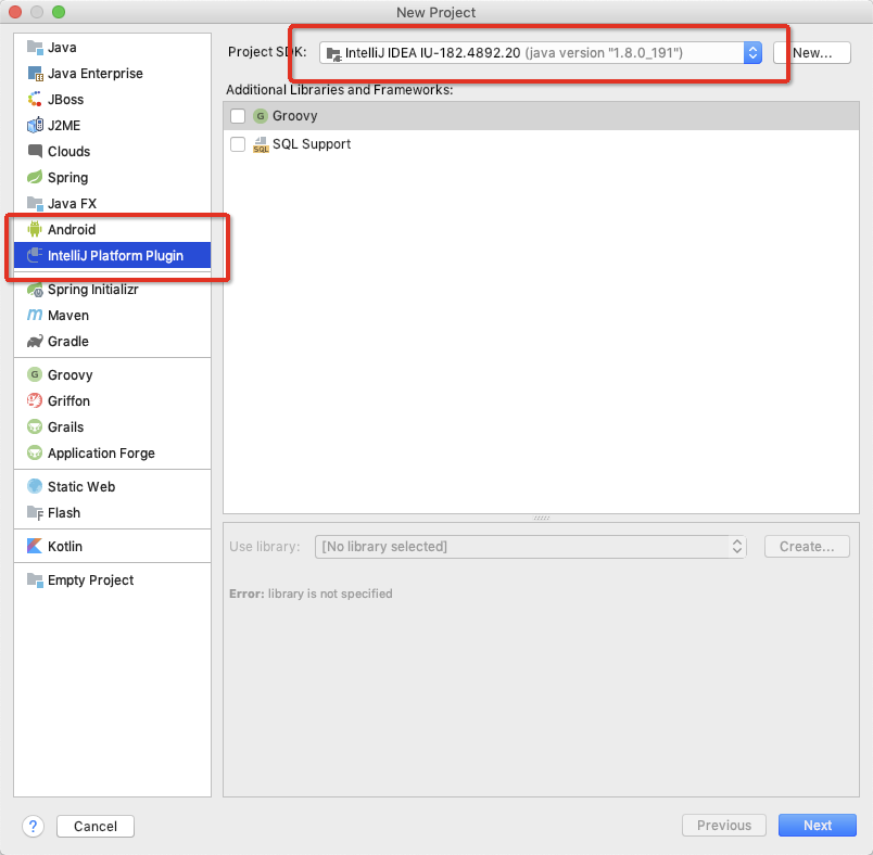 2.新建 Plugin工程 , 顶部菜单栏 File > New > Project… ,然后出现如下界面,选择 IntelliJ Platform Plugin,SDK检查一下有没有,没有的话,下载到电脑,手动选择目录。然后 点击 Next> 为工程命名 > Next