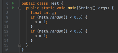 final局部变量也表示该局部变量只读,但与final成员变量不同,final局部变量只是java中的语法糖, 局部变量上的final修饰并不会写入class文件,更无法出现在运行期 。如果局部变量被final修饰,则 编译器在编译时会检查该变量是否有可能发生第二次修改 ,有可能就编译失败;否则,消除final修饰。