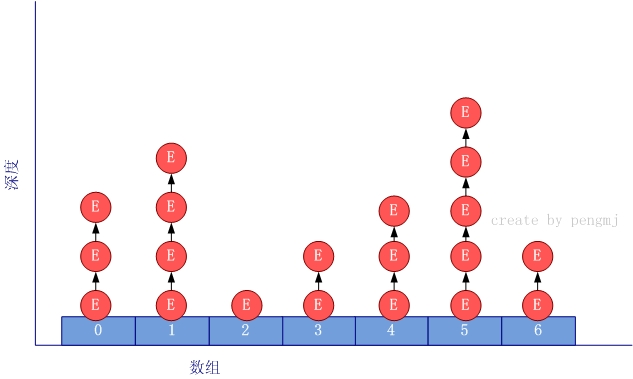 它是属于数组及链表相结合的存储结构。如上图 x轴为数组,y轴为链表。 数组存储方式在内存地址是连续大小固定,一旦分配无法被其他引用占用,查询迅速,时间复杂度O(1),插入删除比较慢,时间复杂度为O(n)。 而链表存储方式则与数组相反,属于非连续性,大小非固定,插入及删除块,查询速度慢。 所以HashMap相对中庸。