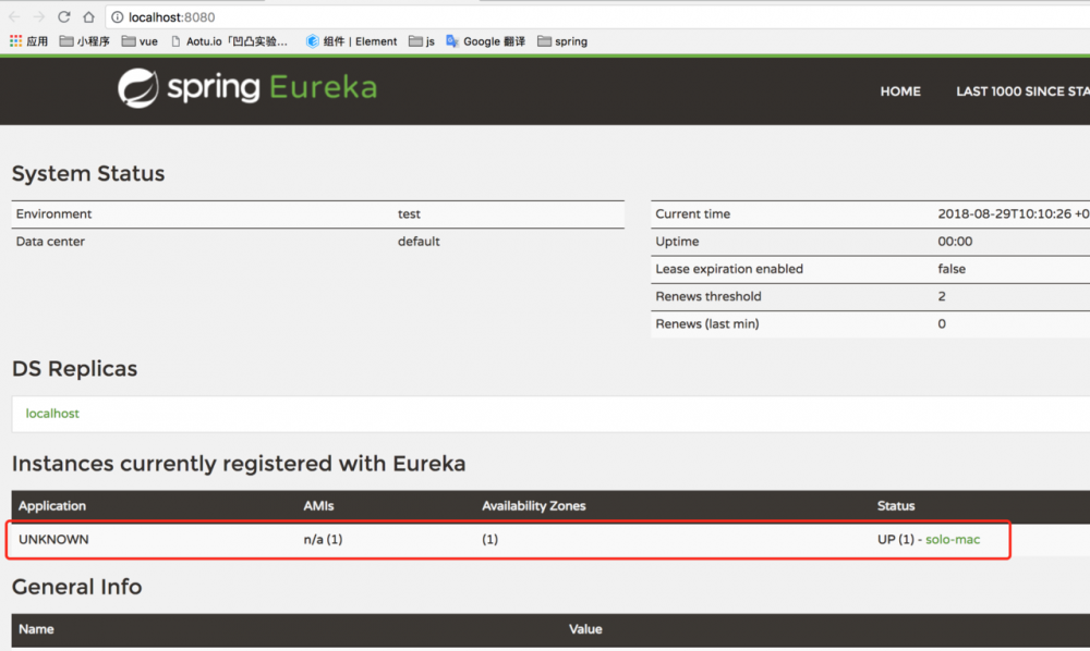 启动项目,浏览器输入地址 http://localhost:8080 即可看到项目正常启动,并将自己注册上去了
