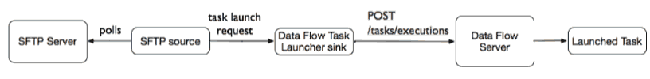新添加的sftp -dataflow源进一步简化了最近增值的使用。在其中一个配置的sftp位置创建新文件时,源会将其下载到本地文件系统并输出任务启动请求负载。有效内容包含要启动的任务的名称(批处理作业)以及本地文件路径。您可以选择包含任务可能需要的任何其他参数。tasklauncher-dataflow接收器接收任务启动请求,并通过其 REST API将 其发布到SCDF服务器。