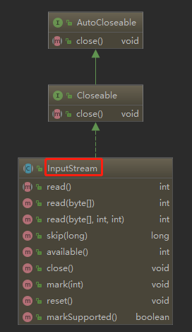 接下来看 InputStream、OutputStream、Writer、Reader 的继承关系图和使用示例。