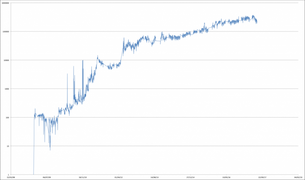 此代码将在屏幕上打印“日期,交易次数”形式的值列表。只需将输出重定向到文件并绘制它。你应该得到这样的东西(注意每日交易数量几乎呈指数增长):
