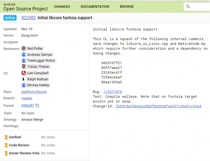 不过,这段提交记录并不是在 Fuchsia 的代码中发现的,而是在 Android 的 Gerrit 源代码管理中。
