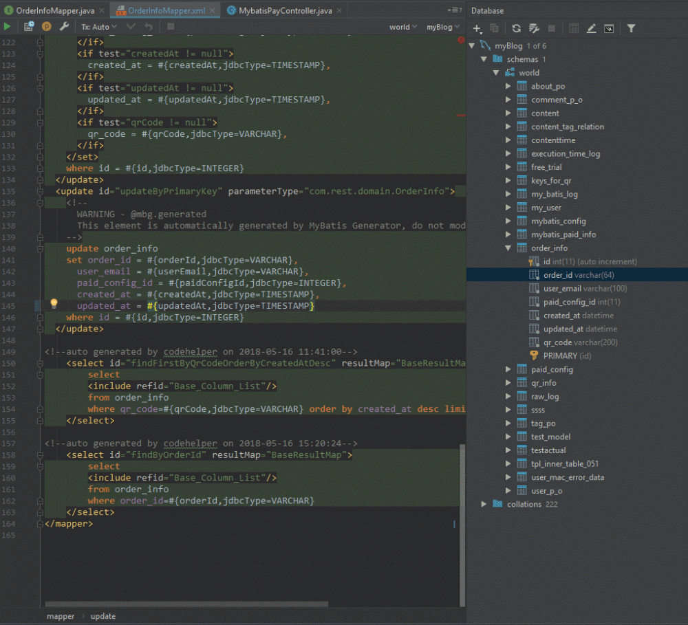 这样mybatis的sql 就可以提供自动补全了 (前提是我们要把数据库给配置好)