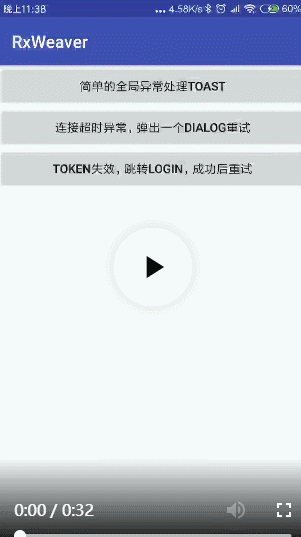 因为我们数据源是一个固定的 ConnectException ,因此我们无论怎么重试,必然都只会接收到 ConnectException ,这不重要,你发现没有,即使是一个复杂的需求(弹出dialog,用户选择后,决定是否重新请求这个流), RxWeaver 依然可以胜任。