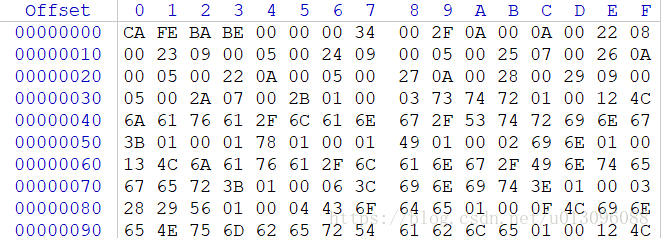对应生成的字节码文件格式如下:(数据内容较多,只是截了部分)