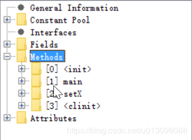 这样就一目了然了,其实字节码里除了我们自己显示定义的2个方法 main 和 setX 。Java编译器生成字节码的时候默认又帮我们生成了2个方法 <init> 和 <clinit> 。