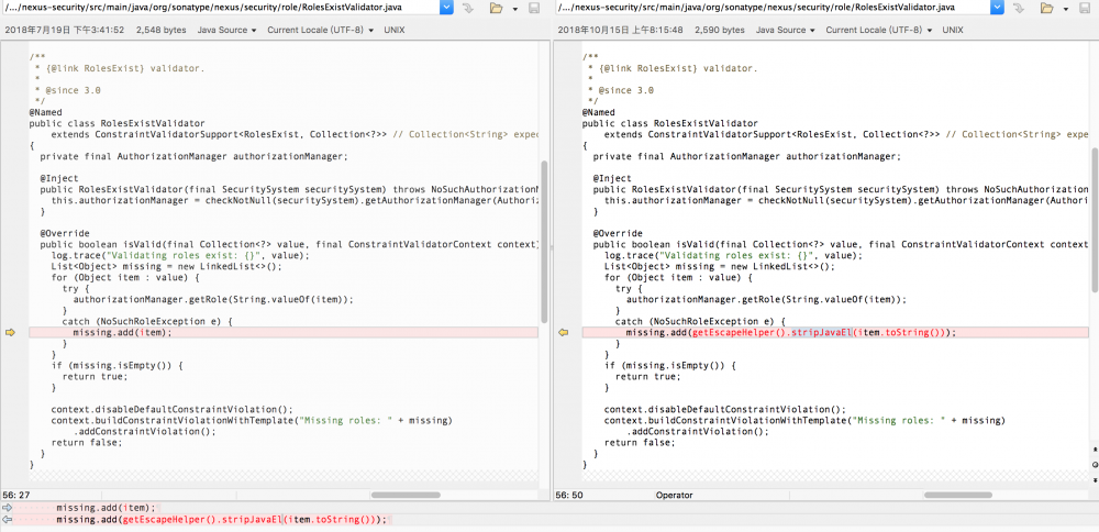 Nexus对于CVE-2018-16621的漏洞修复补丁对比: