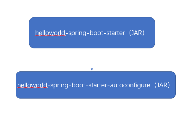 helloworld-spring-boot-starter(以下简称starter):该模块的打包方式是 jar,依赖 autoconfigure 模块,它不写任何代码,只做自动配置包的自动引入,如果要使用 helloworld 自动配置功能,只要在 pom 文件中引入 starter 模块即可: