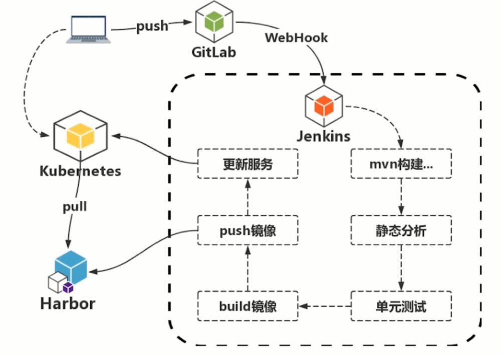 上节已经安装好了gitlab和jenkins,这次就把CICD的流程串起来切身的体验下CICD。目的就是在gitlab提交代码。触发一系列的流程,最后可以看到新代码的效果(机器内容优先,只做到镜像的打包推送)。源码:https://github.com/limingios/msA-docker/vagrant master分支CICD