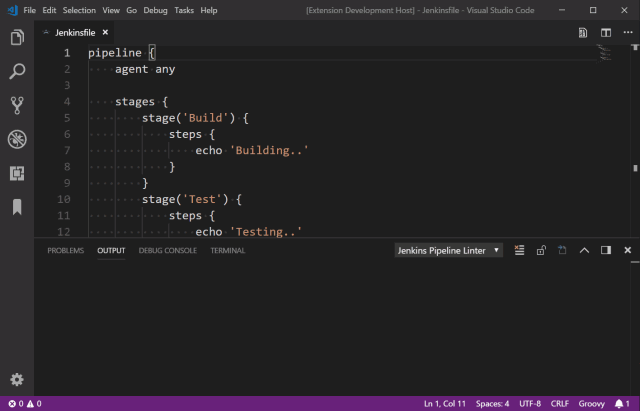 鉴于每天都会使用 VS Code,于是我开始着手为此研发插件,使得校验 Jenkinsfile 变得更加友好。