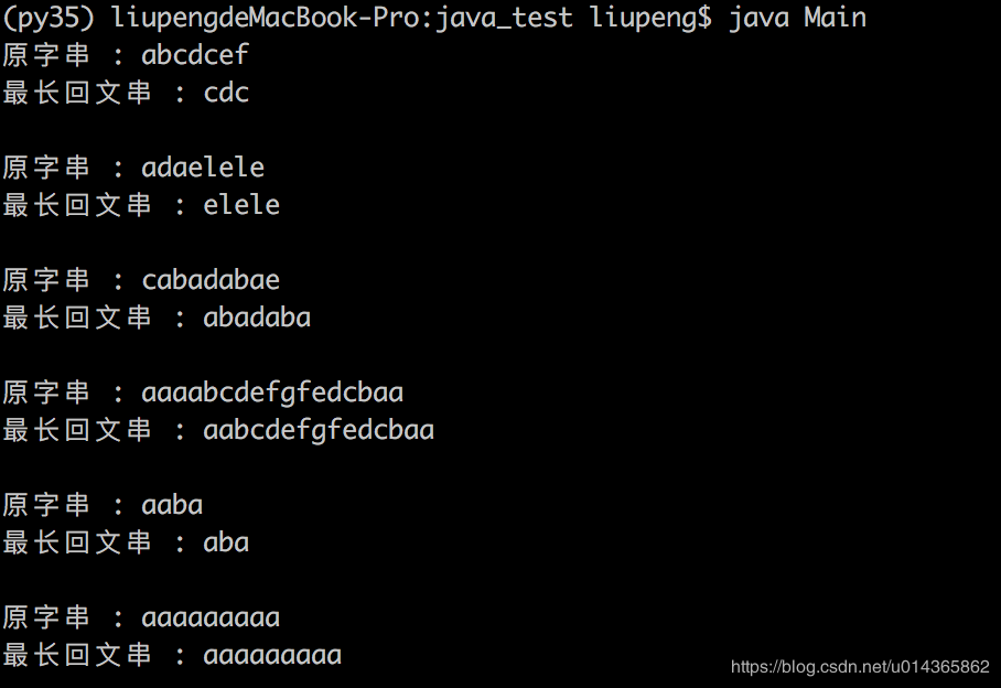 System.out.println(String.format("最长回文串 : %s", ps.findLongestPlalindromeString(str)));