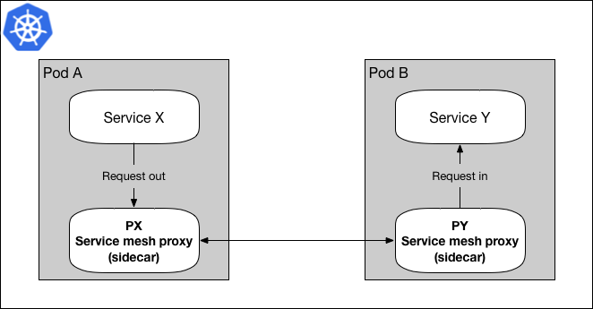 图1展示了一个 数据面板 的简化版,这是服务网格里的术语,其中服务X通过它的sidecar代理向服务Y发送请求。由于服务X是通过它的代理发送请求,因此请求将首先传递给服务X的代理(PX),然后在到达本次请求的目的地,服务Y之前会先发送给服务Y的代理(PY)。在大多数情况下,PX会通过一个服务发现的服务找到PY,例如 Namerd 。