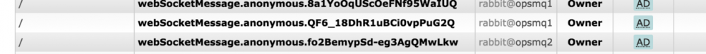 可以看到,相比前面的配置,仅仅多了一个group的配置,这样配置之后,rabbitmq会生成一个名为websocketMessage.test的消息队列(前面讲到的每个微服务建立的消息队列是自动删除的,即微服务断开连接后消息队列就被删除,而这个消息队列是持久化的,也就是即使所有的微服务节点全部断开连接也不会被删除),所有的微服务节点监听这一个队列,当队列中有消息时,只会被一个节点消费。