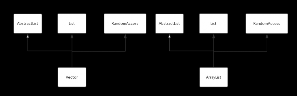 可以看到, Vector 和 ArrayList 都实现了 List 和 RandomAccess 接口,都继承了 AbstractList 。通过他们的继承结构,大致可以猜测他们在元素的处理上存在很多相同的地方。