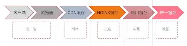缓存一般有以下几类:客户端、浏览器、CDN缓存、NGINX缓存、应用缓存及统一缓存(如redis)。