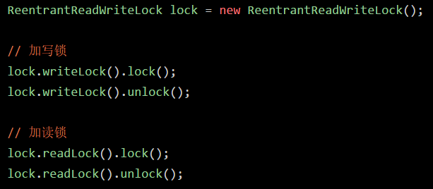 这篇文章来聊一下读写锁。所谓的读写锁,就是将一个锁拆分为读锁和写锁两个锁,然后你加锁的时候,可以加写锁,也可以加读锁。如下面代码所示:
