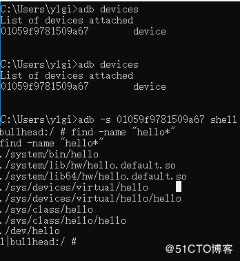 C:/Users/ylgi>adb devices List of devices attached 01059f9781509a67 device C:/Users/ylgi>adb -s 01059f9781509a67 shell bullhead:/ $ ls