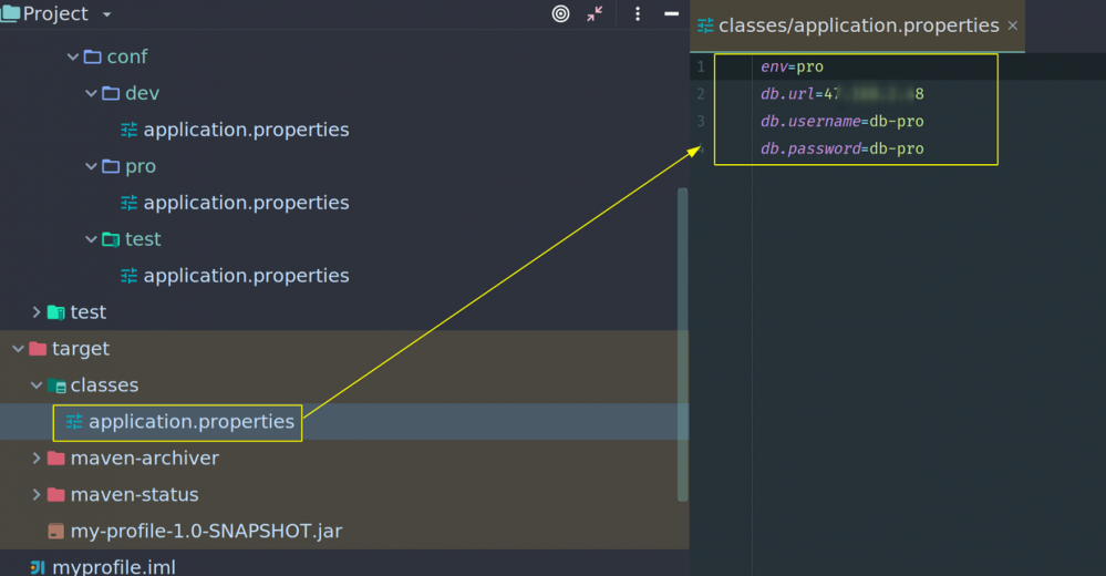 env=pro db.url=47.xxx.xxx.xxx db.username=db-pro db.password=db-pro 复制代码