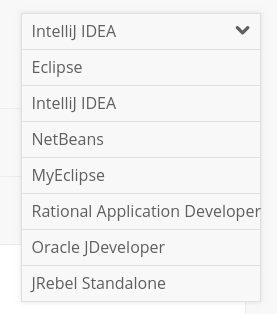 IntelliJ IDEA的JRebel插件包括JRebel代理并帮助您自动生成JRebel配置。它通过单击为应用程序和服务器启用JRebel,并改进了IDE中的调试支持。