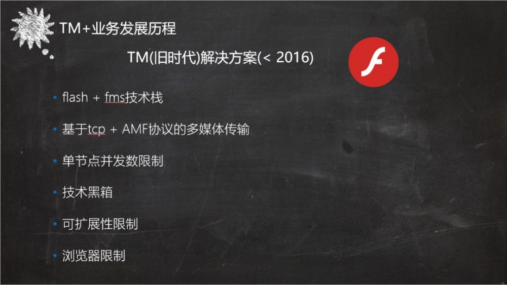 Tutormeet的发展不是一次性成功的,它已经运行了将近10年时间,都是硅谷团队基于Flash的技术站,目前Flash已经被各大厂商抛弃了,以后的设备会越来越少用flash,但是实现的是挺好的,技术本身的特点也带来了很多的局限性,2016年以前Tutormeet基本上是flash的方案。