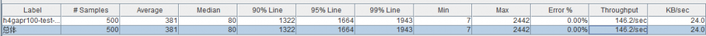 并发100-5组连续请求, TPS: 146.2, error: 0, 平均响应时间: 0.381s, 最大响应时间: 2.44s