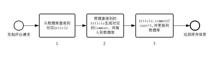 当一个用户评论的时候,1. 根据文章id获取到文章 2. 插入一条评论记录 3. 该文章的评论数增加并保存