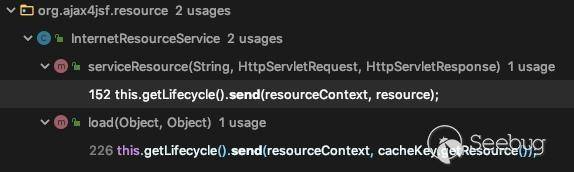 当一个资源请求被调用时就会调用 org.ajax4jsf.resource.ResourceLifecycle 类,而在该类中实现资源发送的方法是 send ,在 send 中主要的功能由 sendResource 方法实现,而在 sendResource 又存在一个关键性的 send 方法: