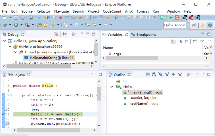 对于所有程序员,程序调试是一项必备的技能。在java程序中,最简单的就是通过 System.out.println()来打印输出各种变量来发现问题,而用的最多的莫过于通过各种调试器来进行调试,如图一所示的eclipse调试器,甚至还可以进行远程调试。对于这些调试器是如何实现的,这就需要了解本文的重点——JPDA(Java Platform Debugger Architecture)Java平台调试体系结构。