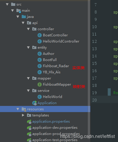 要有实体类,映射类。映射在于决定如何访问数据库,实体类在于接收查询返回值。