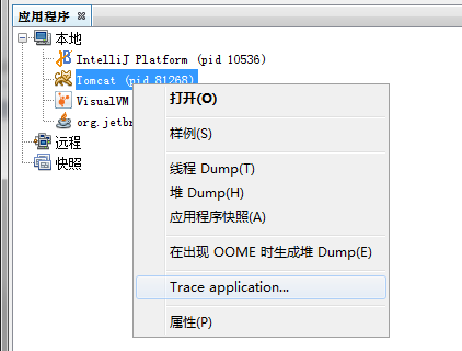 3. 连接到想要 trace 的服务器, 如本地 tomcat;