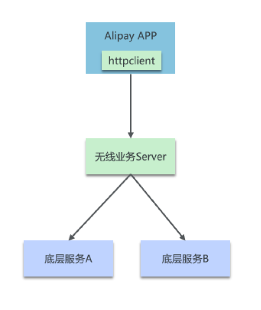 支付宝无线团队于 2008 年成立,那时支付宝 app 整体架构可以简单称之为单应用架构。单应用包括两部分,客户端 APP 和服务器,通过 https 进行通信。
