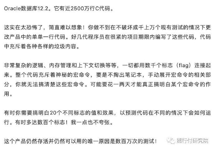 软件质量,不但依赖于架构及项目管理,更与代码质量紧密相关。简洁高效的代码不但易于阅读,更能避免潜在BUG与风险,提高代码质量。近期,一位Oracle程序员在Hacker News上吐槽自己的工作,引起了热议。
