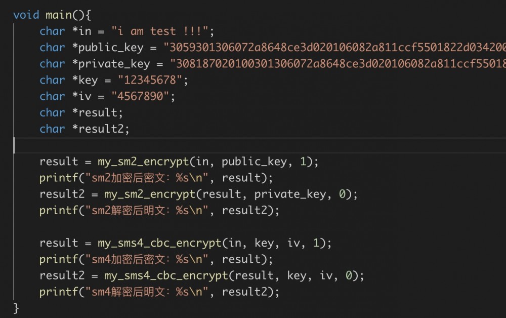 示例代码可以在 github 上面可以下载得到,给出了测试代码,可以直接进行下载调试,主要实现的是 sm2的加解密 , sm4的加解密 ,欢迎star。