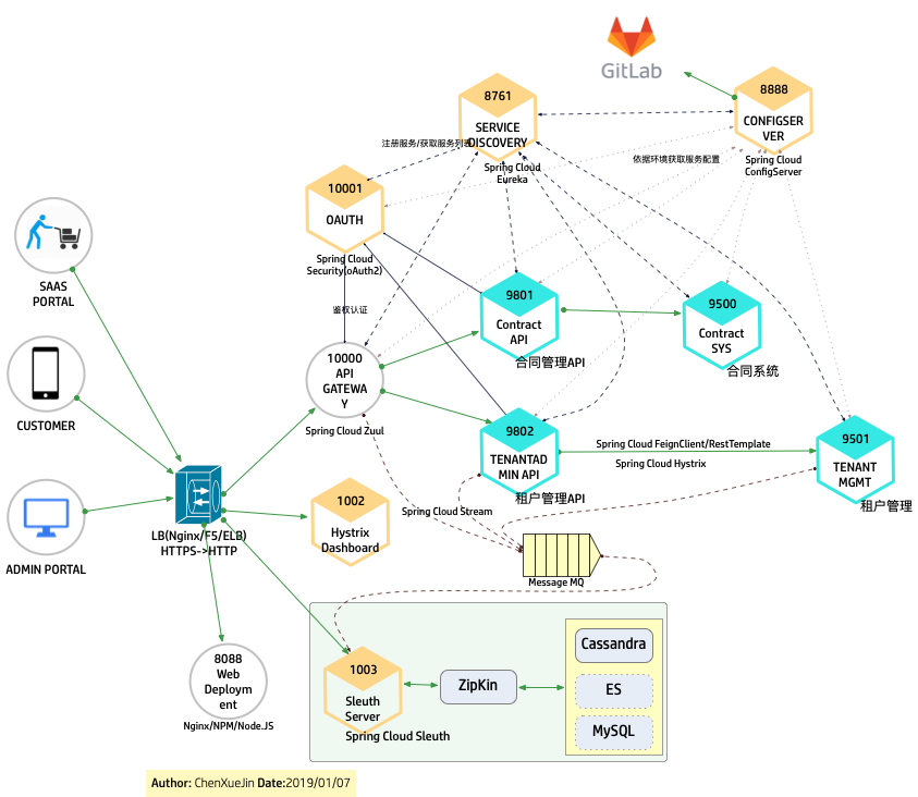 截止到目前为止,微服务的体系结构的思想最先提出并沉淀的是从互联网行业,业界常见的微服务体系结构的落地实践也是来源于互联网行业。当然这并不是说传统的行业对技术敏感度不高,从某种程度上来说,也是业务要求以及相应的技能要求侧重点不一样罢了。这个话题扯开来比较长,在此就不多累述,同学们如果感兴趣,我们可以在群里面进行探讨,估计得说个三天三夜。