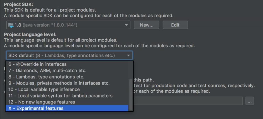 你可能已经知道,从 JDK 12 开始,原始字符串文字(Raw String Literals (JEP 326))特性已经是内置的,这是我们改变在 IntelliJ IDEA 支持它的原因。已有的 Java 12 项目将自动迁移到最新的 Java, Java 11 的发行版本。如果你仍要在 IDE 支持原始字符串文字,请把项目语言等级(Project Language Level)设置成 ”X- Experimental features“。