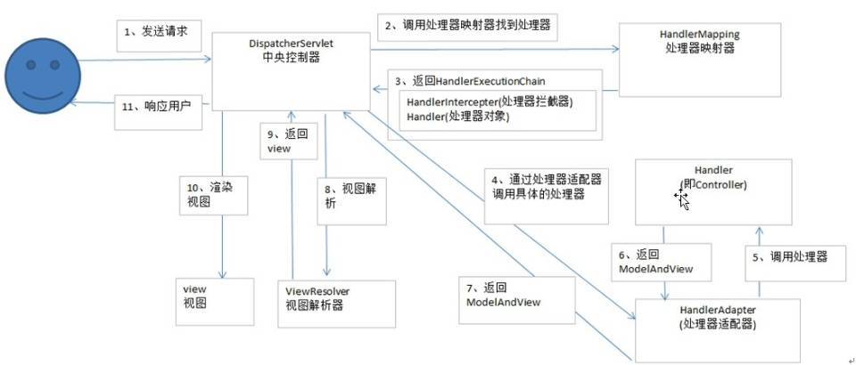 从上图中我们可以总结springmvc的处理流程:
