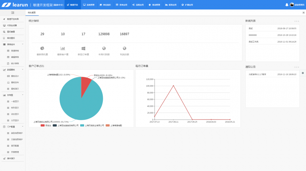快速开发平台是指一个二次开发软件框架,用户可以在这个框架以不写代码或少些代码的方式进行业务系统的开发工作。快速开发平台不同于一般的开发工具,它不只是提供一些基础的功能模块,而且抽象和封装了用户开发一个业务系统所需要的全部功能,使得用户能够不编写代码就能开发出完整的系统。它提供的常用功能包括:页面交互设计、数据管理、用户管理、权限控制、工作流等。
