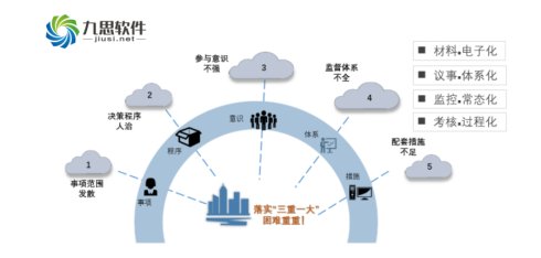 九思软件 “三重一大” 决策管理系统, 通过全程有效监控的电子监察平台的全景监控、全程跟踪,全面信息反馈,针对系统四类主要用户的不同需求,建立健全“三重一大”科学决策、高效执行、有效监督的工作体制和机制,防范决策风险。