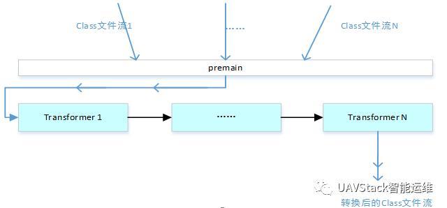premain将在程序的main方法之前执行,我们知道程序的入口是main方法,premain代表了在程序正式启动之前执行的动作,具备类似AOP的能力。transformer,寓意转化器,提供字节码文件流转化的能力。