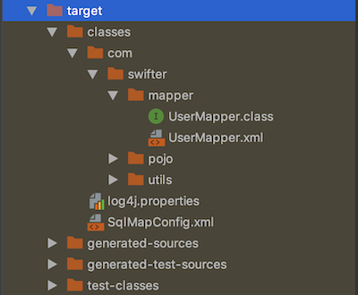 打包之后实际目录结构如下图,xml文件被打包到一个名叫com.swifter.mapper的文件夹,这就导致xml文件找不到.