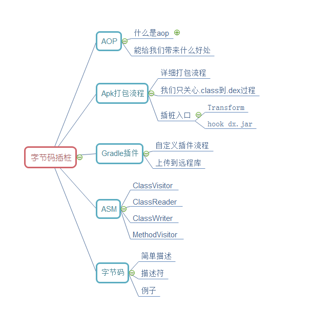 我们要想对字节码进行修改,只需要在javac之后,dex之前对class文件进行字节码扫描,并按照一定规则进行过滤及修改就可以了,这样修改过后的字节码就会在后续的dex打包环节被打到apk中,这就是我们的插桩入口。