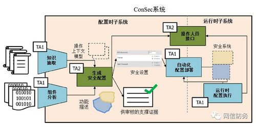 TA1系统把所生成的可由机器识读的描述和模型提交给TA2,由TA2根据这些信息生成目标系统在各个具体操作上下文中的安全配置。TA1还要负责把TA2生成的安全配置参数部署到目标系统,并采取措施确保这些设置是可审计的、可防止篡改的,由运行时监控子系统对各组件的配置进行监控,以及时发现可能出现的变更。这些变更可能是因系统遭受恶意攻击而引起的,也可能是因系统从一个操作上下文转换到另一个操作上下文而引发的。如果需要由人工对自动生成的模型进行审查和优化,TA1应该对这些必要的人机交互做出描述阐明将为不精通安全或配置的用户提供哪些支持。TA1系统必须运用其对配置参数的语义理解,尽可能减小所生成模型的规模。