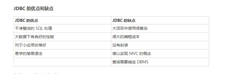 因而,我们在肯定它的优点时,也不应该规避他的缺点。随着工业化步伐的推进,每个数据库往往涉及到很多表,每张表有可能会关联到其他表,如果我们还是按照jdbc的方式操作,这无疑是增加了开发效率。所以,有人厌倦这种复杂繁琐、效率低下的操作,于是,写出了著名的hibernate框架,封装了底层的jdbc操作,以下是jdbc的优缺点: