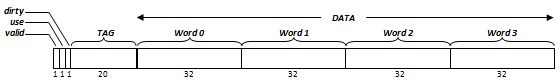 结构上,一个直接映射(Direct Mapped)缓存由若干缓存块(Cache Block,或Cache Line)构成。每个缓存块存储具有连续内存地址的若干个存储单元。在32位计算机上这通常是一个双字(dword),即四个字节。因此,每个双字具有唯一的块内偏移量。每个缓存块还可对应若干标志位,包括有效位(valid bit)、脏位(dirty bit)、使用位(use bit)等。这些位在保证正确性、排除冲突、优化性能等方面起着重要作用。