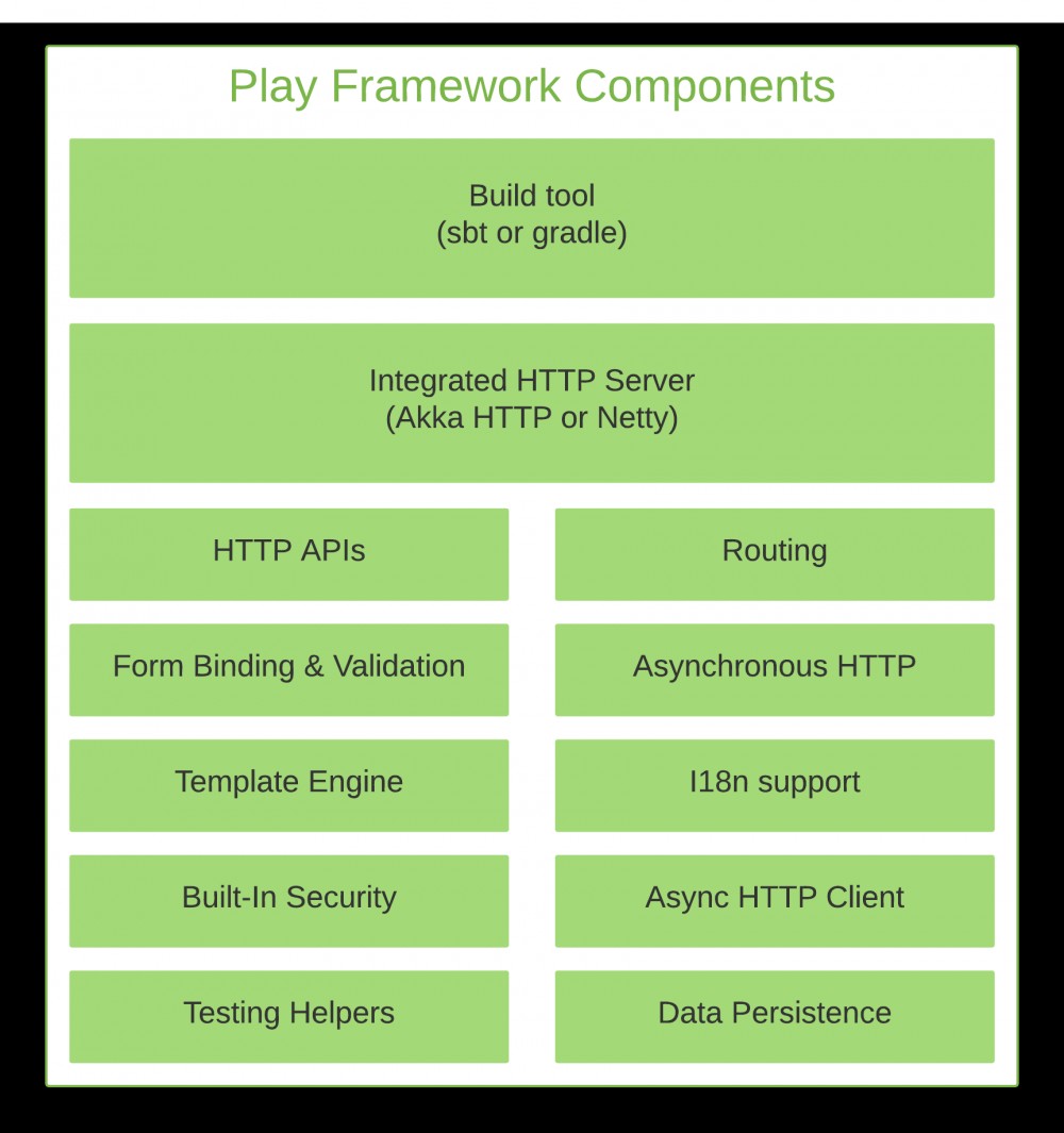 Play是一个全栈框架,它包含了Web应用和Rest服务所需要的所有组件,如:http服务器、表单处理、跨域请求保护、强大的路由机制、国际化等等。Play集成了很多ORM层。